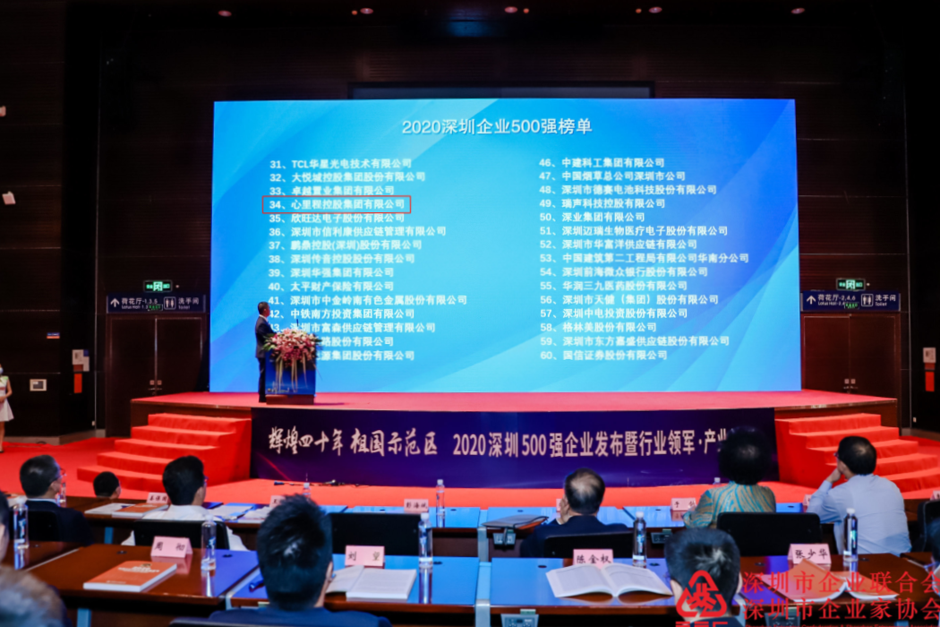 排名第34位!心里程集團(tuán)連續(xù)三年上榜深圳企業(yè)500強(qiáng)
