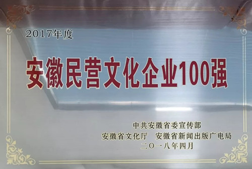 安徽心里程科技有限公司成功入選“2017年度安徽民營(yíng)文化企業(yè)100強(qiáng)”