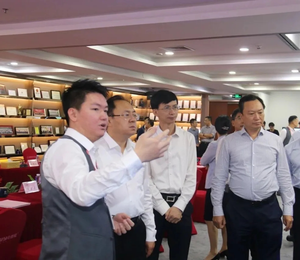 彭國遠(yuǎn)董事長(左一)陪同龍巖市委書記李建成(左二)、