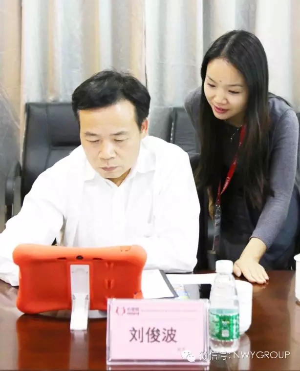 集團(tuán)董事長彭國遠(yuǎn)對劉俊波處長一行的到來表示了熱烈的歡迎和衷心的感謝。集團(tuán)總裁彭錦環(huán)在總部會議中心向劉俊波處長一行介紹了集團(tuán)發(fā)展歷史、精益化管理經(jīng)營理念,產(chǎn)業(yè)結(jié)構(gòu)升級規(guī)劃、教育新產(chǎn)品研發(fā)和公益慈善等方面的情況。并特別提及心里程集團(tuán)子公司廣東心里程教育科技有限公司是教育部數(shù)字化教學(xué)裝備,平板電腦移動學(xué)習(xí)終端標(biāo)準(zhǔn)起草制定者之一。心里程集團(tuán)自主研發(fā)的原書筆跡書寫和原始筆跡繪畫以及仿真實(shí)驗(yàn)軟件,藍(lán)光過濾保護(hù)學(xué)生視力等先進(jìn)科技成果都被寫入教育部數(shù)字化教學(xué)裝備,平板電腦移動學(xué)習(xí)終端標(biāo)準(zhǔn)。作為全國性標(biāo)準(zhǔn)推廣,造福廣大中小學(xué)生。