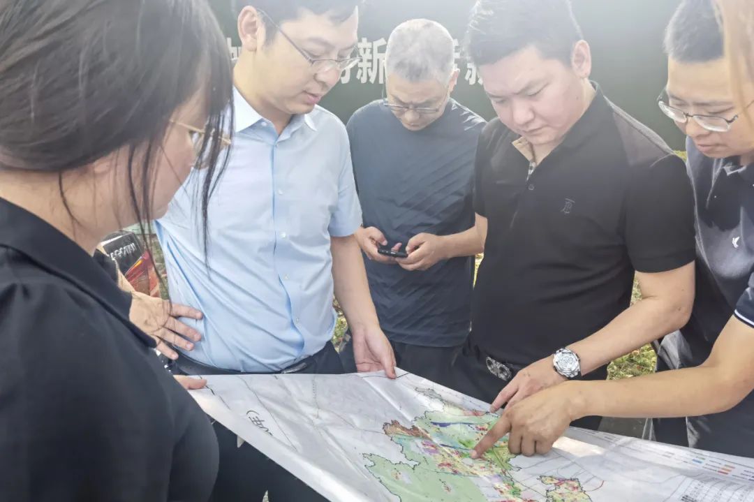 胡藍(lán)副區(qū)長(zhǎng)(左二)陪同彭國(guó)遠(yuǎn)董事長(zhǎng)(右二)考察地塊情況
