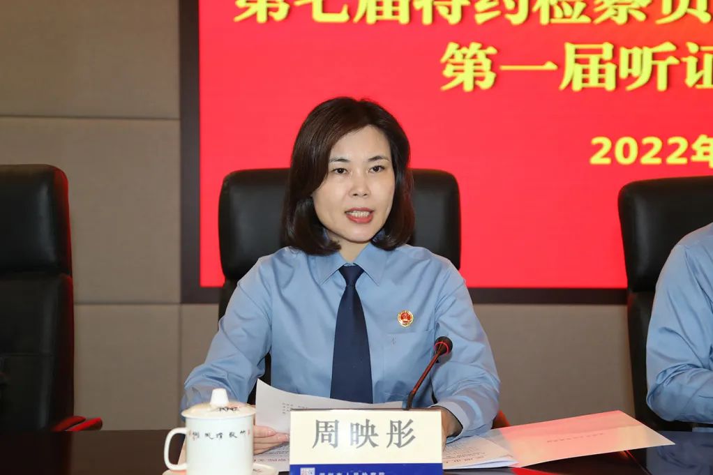 深圳市檢察院黨組成員、副檢察長(zhǎng)周映彤依次宣讀《深圳市人民檢察院關(guān)于聘任第七屆特約檢察員的決定》《深圳市人民檢察院關(guān)于聘任第六屆司法監(jiān)督員的決定》《深圳市人民檢察院關(guān)于聘任丁寧等72人為第一屆聽(tīng)證員的決定》。