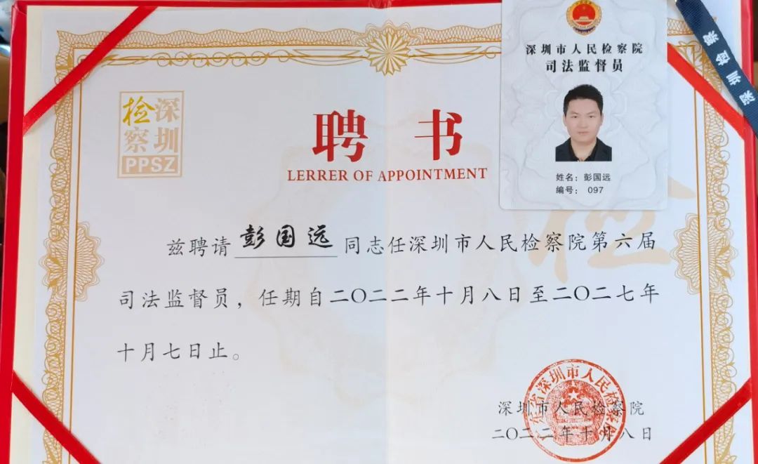彭國(guó)遠(yuǎn)董事長(zhǎng)表示,非常感謝深圳市人民檢察院的信任與重托,獲聘第六屆司法監(jiān)督員,??這不只是一份榮譽(yù),更是一份責(zé)任。在今后的工作中,將進(jìn)一步加強(qiáng)對(duì)法律知識(shí)的學(xué)習(xí),提高法治素養(yǎng),積極建言獻(xiàn)策,以高度的責(zé)任感認(rèn)真履職盡責(zé),充分發(fā)揮好監(jiān)督員的橋梁作用和監(jiān)督作用。一方面,廣泛聽(tīng)取社會(huì)各界對(duì)改進(jìn)和完善檢察院工作的中肯意見(jiàn)和建議,另一方面,積極向社會(huì)傳遞檢察院的聲音,增進(jìn)社會(huì)各界對(duì)檢察院工作的認(rèn)同理解。