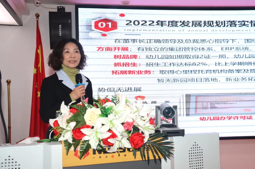 心里程教育投資集團(tuán)常務(wù)副總裁劉秀禎詳細(xì)回顧了教育投資集團(tuán)2022年的主要工作,并就公司2023年的重點(diǎn)工作作詳細(xì)部署。她指出,2022年,幼教集團(tuán)在董事長(zhǎng)正確領(lǐng)導(dǎo)及總裁悉心指導(dǎo)下,圍繞2022年度規(guī)劃,從幼兒園樹品牌、抓招生,拓展新園新業(yè)務(wù)三方面開展;有獨(dú)立的集團(tuán)管控體系、ERP系統(tǒng)、考勤系統(tǒng),并正式更名為心里程教育投資集團(tuán)有限公司。站在新的征程,心里程教育投資集團(tuán)將在彭國(guó)遠(yuǎn)董事長(zhǎng)等領(lǐng)導(dǎo)的正確領(lǐng)導(dǎo)下,在全體成員及園所教職工的共同努力下,不忘初心、繼續(xù)前進(jìn),在科技啟蒙領(lǐng)域及未來人才培養(yǎng)方向上做出更多的貢獻(xiàn)。