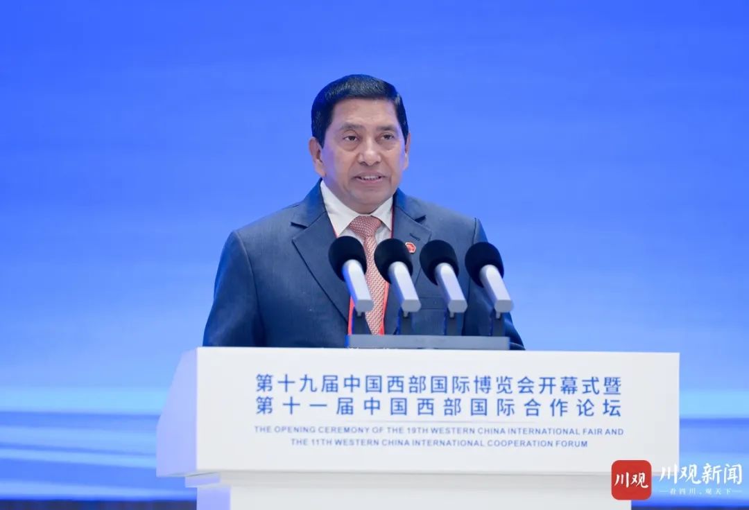 6月29日,以“中國新時代·西部新征程”為主題的第十九屆中國西部國際博覽會開幕式暨第十一屆中國西部國際合作論壇在成都舉行。中共中央政治局委員、國務院副總理何立峰致辭并宣布開幕,本屆西博會主賓國泰國國會上議院議長蓬佩、尼泊爾副總理兼內(nèi)政部部長施雷斯塔、吉爾吉斯斯坦國務秘書卡斯馬穆別托夫致辭。