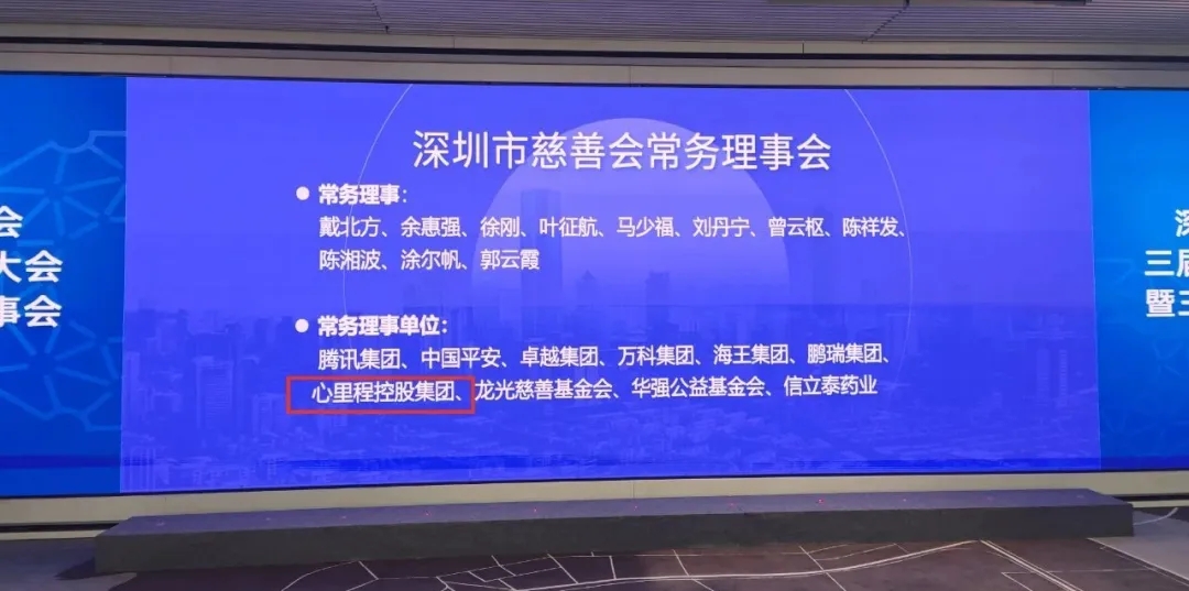 心里程控股集團當選為新一屆深圳市慈善會常務理事單位