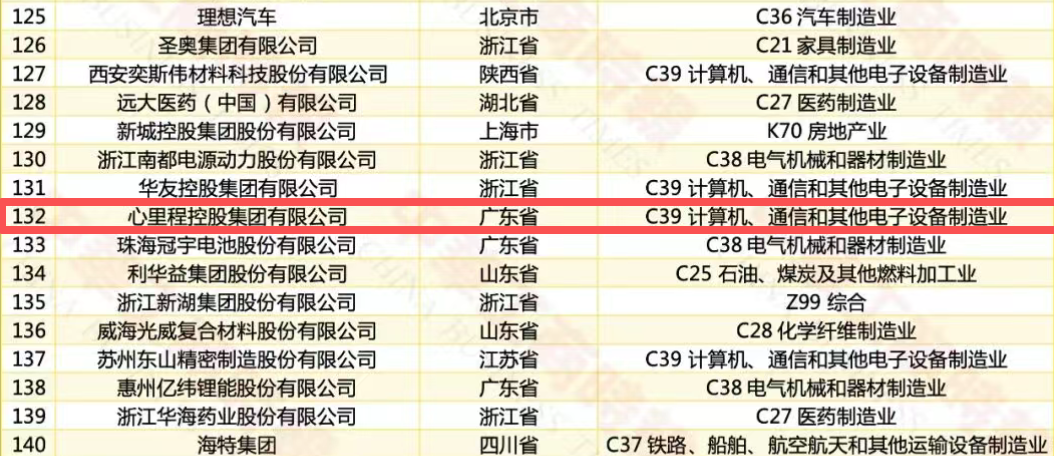 心里程集團(tuán)榮登2025民營企業(yè)發(fā)明專利500家第132位