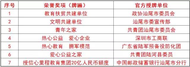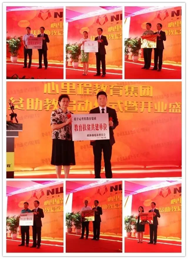 活動舉行了隆重的授牌儀式。政協(xié)汕尾市委員會授予心里程教育集團“教育扶貧共建單位”,汕尾市委宣傳部授予心里程教育集團“文明共建單位”,共青團汕尾市委員會授予心里程教育集團“青年之家”,深圳市工商聯(lián)授予心里程教育集團“熱心公益 愛心企業(yè)”,廣東省陸軍預(yù)備役防化團授予心里程教育集團“熱心教育 擁軍模范”,共青團陸河縣委員會授予心里程教育集團“愛心公益之家”,中國郵政儲蓄銀行汕尾市分行授信心里程教育集團“20億人民幣額度”。