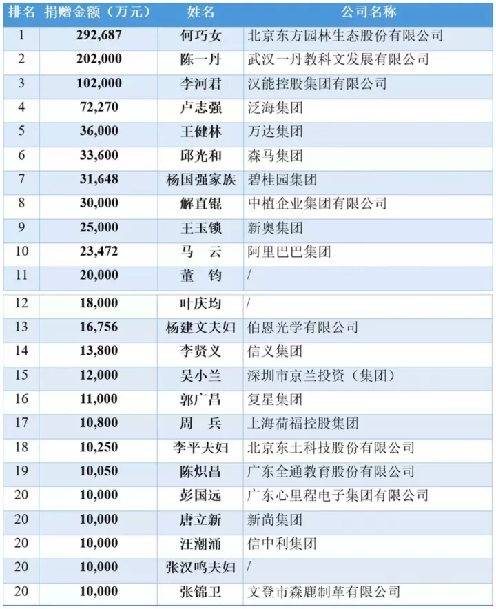 ▲2015年《胡潤百富全國慈善榜》前20名