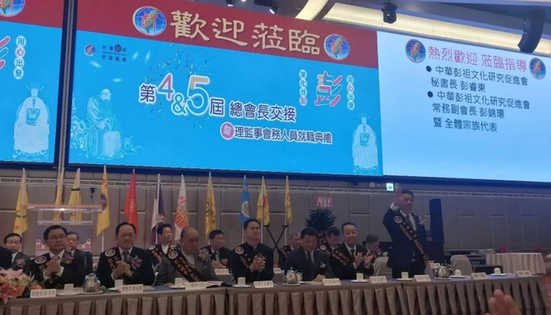 3月31日,心里程教育集團(tuán)總裁彭錦環(huán),作為中華彭祖文化研究促進(jìn)會常務(wù)副會長,應(yīng)邀前往臺灣參加參加臺灣彭姓宗親總會第4&5屆總會長交接暨理監(jiān)事會務(wù)人員就職典禮和臺灣新北市彭姓宗親會第八、九屆理事長交接暨理監(jiān)事、會職員就職典禮。