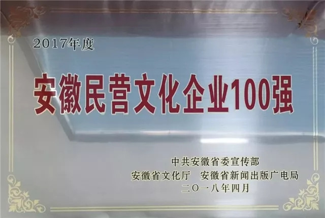 ??2017年,安徽心里程科技有限公司成功入選“2017年度安徽民營文化企業(yè)100強”。