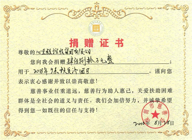 ▲ 2018年,心里程向深圳對(duì)口扶貧的汕尾市捐款2018萬(wàn)元