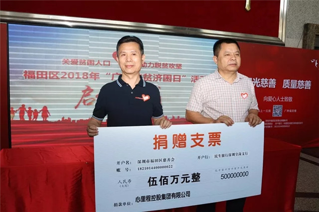 ▲ 2018年,心里程向深圳對(duì)口扶貧的河源市捐款500萬(wàn)元