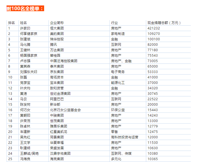 福布斯中文網(wǎng)公布2018中國(guó)慈善榜