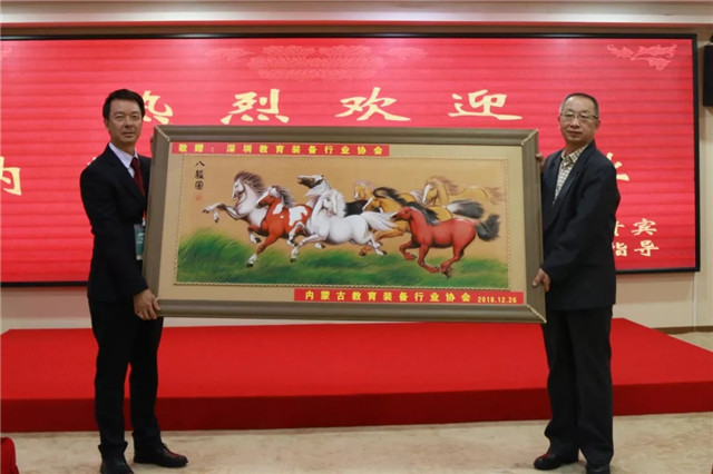會(huì)后,內(nèi)蒙古教育裝備行業(yè)協(xié)會(huì)考察團(tuán)向深圳教育裝備行業(yè)協(xié)會(huì)贈(zèng)送《八駿圖》,彭錦環(huán)總裁、會(huì)長代表協(xié)會(huì)接受禮物,并回贈(zèng)協(xié)會(huì)紀(jì)念品以表達(dá)謝意。