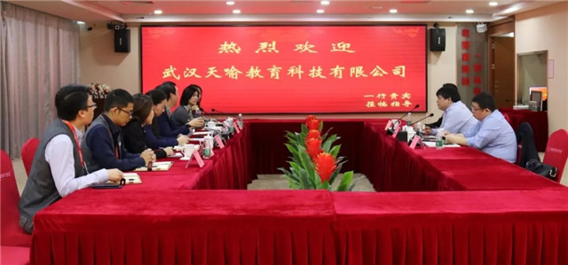 武漢天喻教育科技有限公司副總經(jīng)理陳誠、項目執(zhí)行總監(jiān)李先登、心里程教育集團(tuán)總裁辦主任蘇冰、研發(fā)中心總監(jiān)黃欣、資材中心采購開發(fā)經(jīng)理蘇珊、營銷中心區(qū)域經(jīng)理邱祖勝等參加座談。