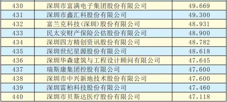 2019深圳500強(qiáng)企業(yè)名單