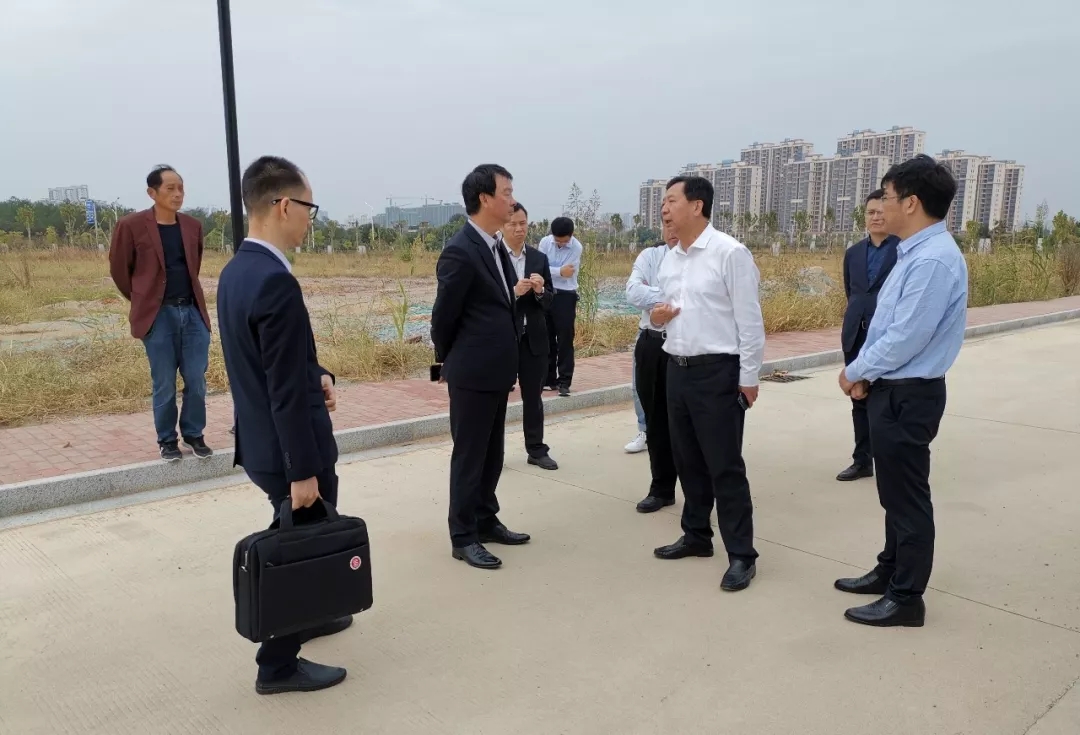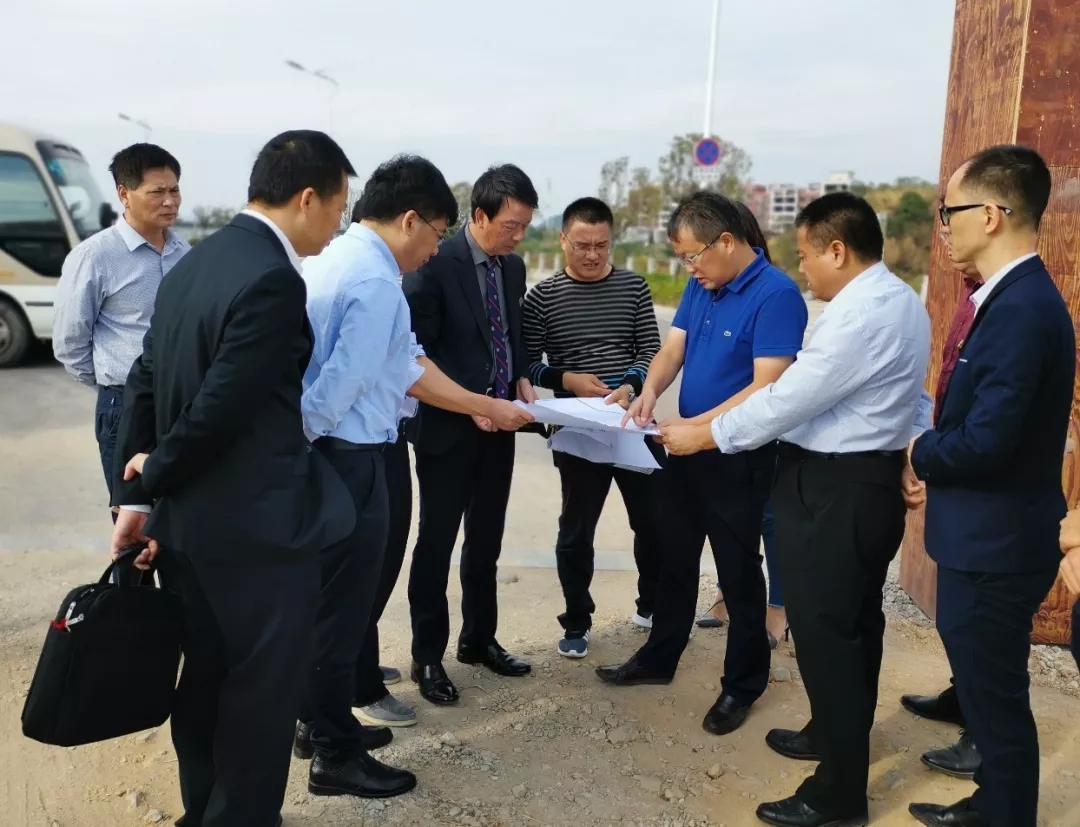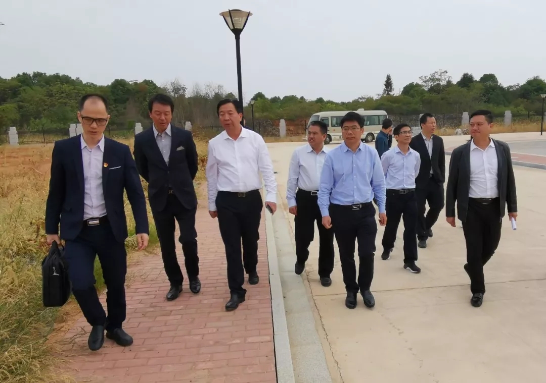 汪華輝縣長(zhǎng)(右三)等領(lǐng)導(dǎo)陪同彭錦環(huán)總裁(左四)實(shí)地考察區(qū)域總部項(xiàng)目選址