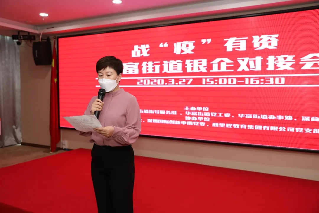 近日,由深圳市委派駐華富街道指導(dǎo)服務(wù)組,華富街道黨工委、辦事處,深商總會(huì)聯(lián)合主辦,華富街道總工會(huì)、深圳國際創(chuàng)新中心黨委、心里程集團(tuán)黨支部承辦的“戰(zhàn)‘疫’有資,華富街道銀企對(duì)接會(huì)”在深圳國際創(chuàng)新中心A座26樓心里程會(huì)議室隆重舉行。會(huì)議旨在進(jìn)一步服務(wù)實(shí)體經(jīng)濟(jì)發(fā)展,幫助轄區(qū)企業(yè)搭建融資平臺(tái),拓寬融資渠道,提振企業(yè)經(jīng)營信心。共有7家銀行、2家擔(dān)保公司、20余家企業(yè)代表參加。